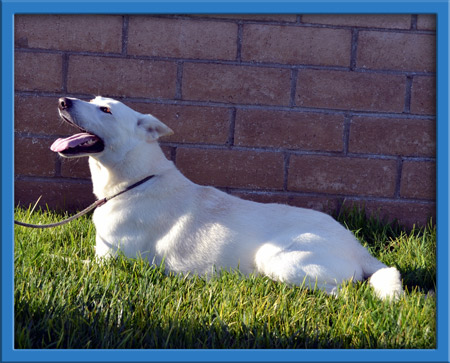 Cloud has a lovely soft white coat with feathered tips of caramel. He is agile, strong and able to lounge around or run all day long. His teeth are perfect, his ears are gorgeous, his tail is flawlessly fluffy, and his eyes show wisdom beyond his young years. Cloud walks effortlessly on a leash, obeys his commands and is extremely attentive when out for a walk. It should be noted that Cloud is currently very shy and as such, he should have a crate to go to whenever he requires a little time to himself. It is reasonable to assume an initial introduction will take 20 to 30 minutes of patients before he is comfortable with a new person. However, after Cloud gets to know you, you're in for a rewarding experience that is definitely worth it. You should expect Cloud to forget being shy after he�s acclimated to his new healthy environment. This boy is a gem to behold, a true find and we hope he finds a family that loves him as much as he deserves.