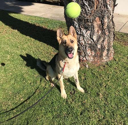 Comet is a bouncy, lovable, energetic GSD who loves people, going for walks, chasing down balls, and enjoying every minute of life. We rescued him from a high-kill shelter and he doesn't seem to have had the easiest life prior to landing there, but it hasn't dampened his spirit one bit. He doesn't seem to have been socialized with other dogs prior to his rescue, but we're working on that and his basic obedience now. He loves all people, including kids, but is a little too jumpy for very young children.