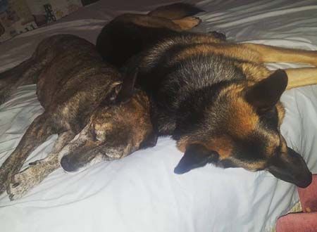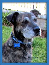 Cookie came to us after being sent to the shelter with her 3 puppies who were about 2 weeks old. Hard to imagine a 10 year old dog in this position, so we rescued the whole family.
