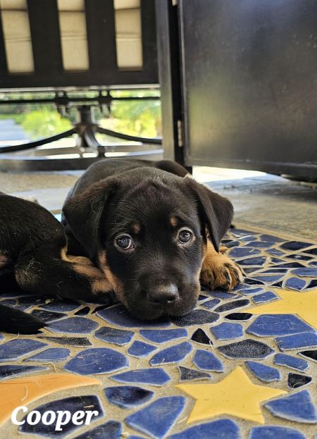 Meet Cooper! He is a good looking black and tan puppy who is as sweet as can be and who loves to be cuddled.