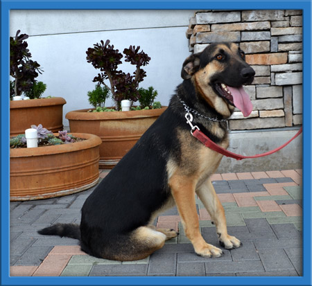 If you study Cosmo's photos, you'll get a very good understanding of this young stud's personality. His young mind is always searching, always aware of his surroundings and forever seeking to please. Cosmo hasn't had anyone to work with him on his walking skills, yet that will come in time and training. He's very quick to understand a correction and has an uncanny ability to understand what you want from him. We feel this is proof of his general good nature and a very high IQ. Currently, Cosmo tends to be very shy and he does wonderfully around other confident canines, however this should pass quickly when he becomes comfortable in his new forever home. Nothing helps a young dog to succeed in life more than love and consistency.