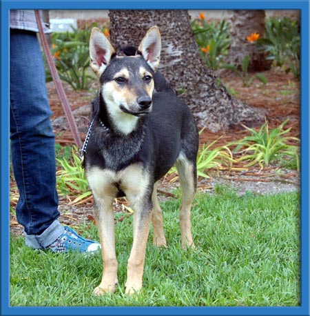 Crissy is a little lady who knows how to mix it up if she needs to! This little pixie works her spell on everyone she meets. She loves to burrow on her foster mom's couch, stretching as far as she can to take over the entire length of it! Given that she only weighs about 38 lbs (she won't get much bigger) she does a LOT of preening & stretching! Crissy will sleep in a crate but is reliably housebroken in her foster home. We would recommend that she sleep in a crate in her new home for the first few days but she is a bright little gal and picks things up very quickly! She is dog friendly, absolutely adores attention from humans and has a fun sense of adventure.