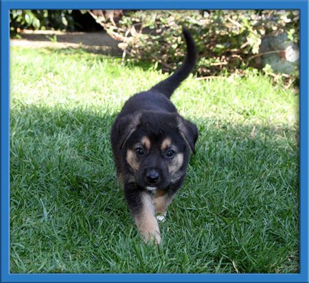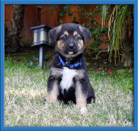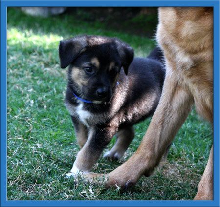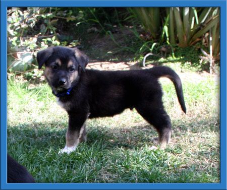 Presenting Chatzi's "Cadets", Coastal's newest litter available for adoption. Their mom, Chatzi was very pregnant when rescued from a high kill shelter. It seemed like she knew she was safe because she whelped her 9 puppies less than 24 hours after arriving in the rescue. On 2/07/13, Chatzi welcomed 4 boys and 5 girls to the world. These lucky pups have grown up in one of our foster homes. Since the pups are all black and tan and very "Shepherd" looking, we think their dad is probably a Shepherd mix.