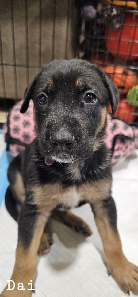 Dai and her siblings were born in a shelter to mom Dolly on December 2, 2023. A week after they were born, Dolly and her babies moved into one of Coastal German Shepherd Rescues' foster homes.