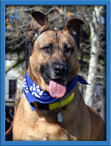 This beauty is a playful, hearty gal! After spending quite a long time in boarding care, this sweetheart is finally in a foster home and thriving. Her foster mom reports she has only heard her bark once. So, if you're looking for an easy, quiet girl, Dalena's a good choice! A medium-sized Shepherd mix, she looks bigger in pictures than she actually is -- though she is quiet sturdy. She's very gentle though and would do just fine with kids. In fact, she enjoys meeting children in the park and typically hands out kisses if given the opportunity. Dalena is friendly with dogs of all sizes -- and though she hasn't been cat-tested, we think she'd pass that test, too.
