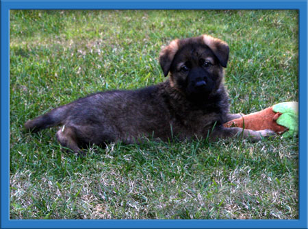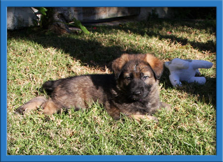 Meet the "Dream Team", Dessa and Kodiak's darling puppies. We received a frantic call about a couple of German Shepherds in danger in a high kill shelter and the female looked like she was due to whelp any minute. We scrambled to get them out of the shelter and Dessa into a foster home. Well it turned out Dessa really wasn't quite ready and our "Dream Team" finally arrived on the scene on November 27.