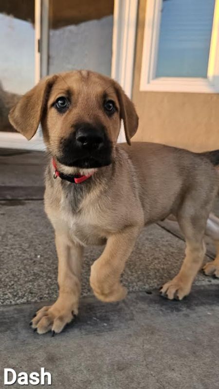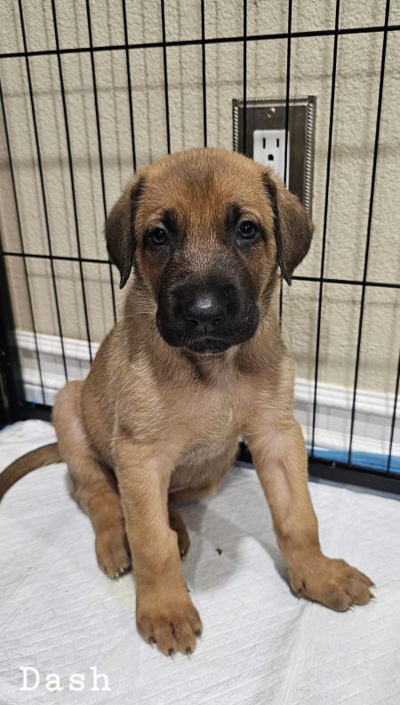Dash and his brother Dexter look alike and are a light brown compared to the other puppies in the litter which are mostly black or black and tan. Dash and Dexter are two of the sweetest puppies in the litter. Dash would rather be with hanging out with his people than with other dogs, though he does just fine with the other canines. Dash would do well by himself or placed in a home with other dogs.
