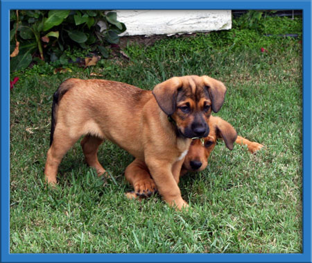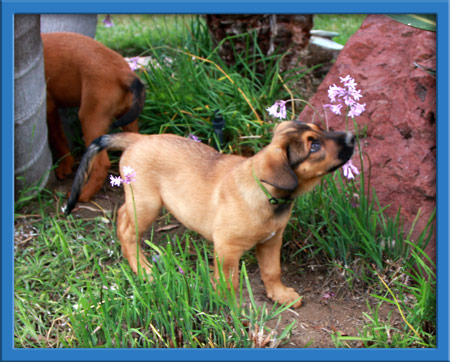 Now weaned and enjoying some independence, Dakari's 5 boys and 8 girls are almost ready for homes of their own. They love to explore, play with their toys and rough house with each other. They also enjoy the company of the big dogs in their foster home. They love to initiate play through the fence of their puppy area and a game of follow the leader is always fun! They are also very people oriented and love to be petted and played with.