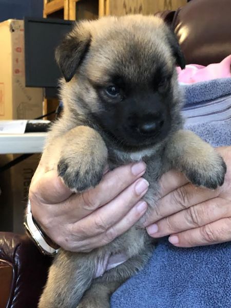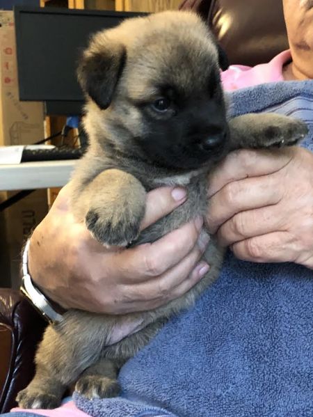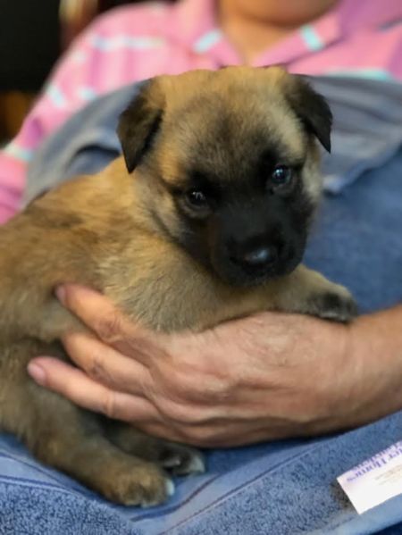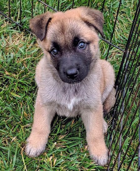 Both the mom and dad are German Shepherds. Dawn is cute, cuddly, and could be a little feisty when playing with her siblings. She would do best in a home that has some German Shepherd experience. Dawn will grow up to be a beautiful fawn color with a dark mask.