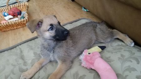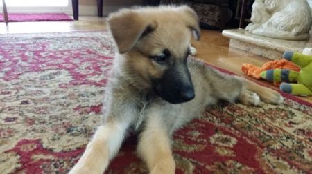 Delphi is possibly a full German Shepherd puppy. Delphi was adopted by a family who took her home and found out that their 8 year old dog did not like her. They had to give Delphi away since their dog was acting aggressive towards her and they were concerned for her safety.