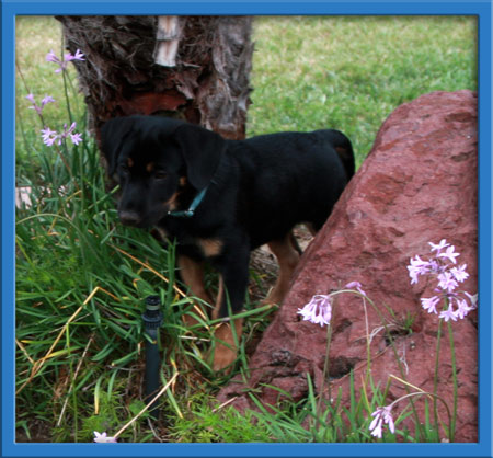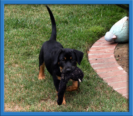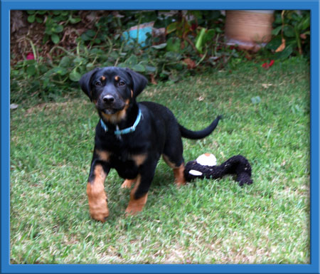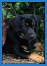 Now weaned and enjoying some independence, Dakari's 5 boys and 8 girls are almost ready for homes of their own. They love to explore, play with their toys and rough house with each other. They also enjoy the company of the big dogs in their foster home. They love to initiate play through the fence of their puppy area and a game of follow the leader is always fun! They are also very people oriented and love to be petted and played with.