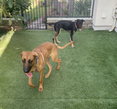 Dexter is chill, funny and loves to play! They will be large adult dogs as they are a blend of Great Dane, German Shepherd and Doberman.