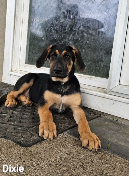 Dixie and her siblings were born in a shelter to mom Dolly on December 2, 2023. A week after they were born, Dolly and her babies moved into one of Coastal German Shepherd Rescues' foster homes.