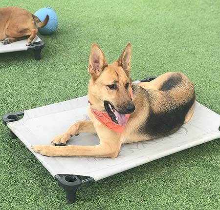 A perk to adopting Dodger is that you'll get a session with his trainer, to set you up for success upon adoption, and can attend The Royal K9 Dog Psychology & Training Center monthly training sessions (for all graduates of their board and train program) for a lifetime!
