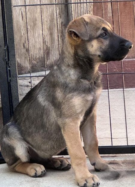 Drew has the darkest coloring of the puppies and is also the most relaxed and chilled. His reserved nature blossoms as he is held and receives attention from you. His coloring is closest to that of a GSD.
