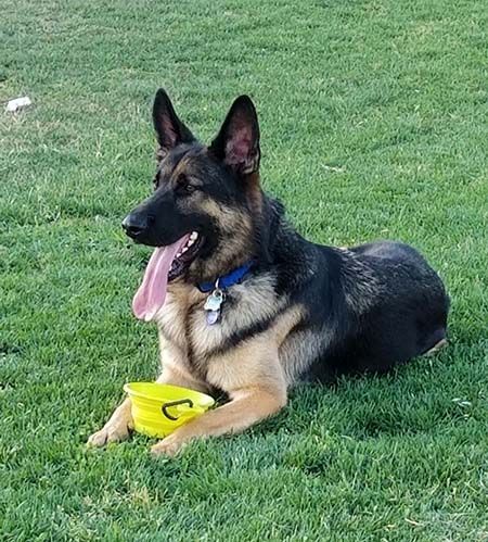 This 93 pound beauty has gone through obedience training and is super smart. He knows his basic commands, and is good on a leash. He will, however, take the lead if he feels he's in charge and needs a family with GSD experience who understands how to handle a protective dog.