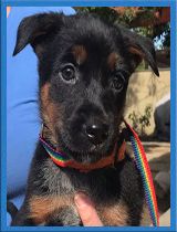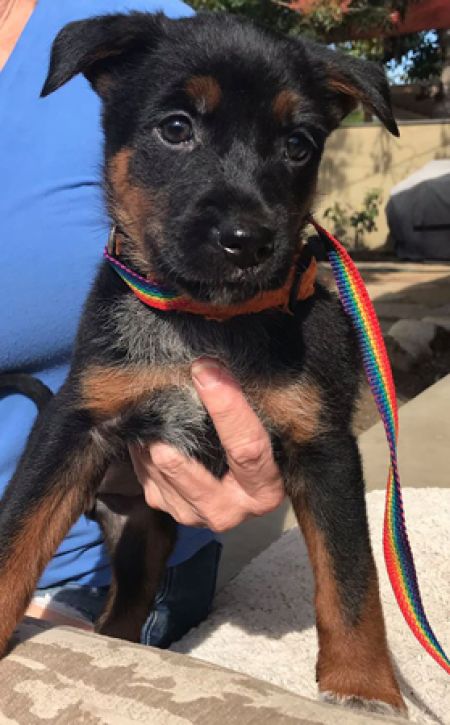 Etta (mom) came to us with her litter of 8 puppies from a shelter in the Inland Empire. Etta is a small German Shepherd mix. We do not know what breed(s) the father of the puppies was. The puppies were born in the shelter and went to their current foster home when they were 2-3 days old. They have been weaned and dewormed and will receive their first puppy vaccination and a microchip in a couple of days when they turn 8 weeks old. They live with a senior GSD and two young dogs, plus their mother. These puppies are healthy and very happy playing with each other and with the other dogs in the foster home.