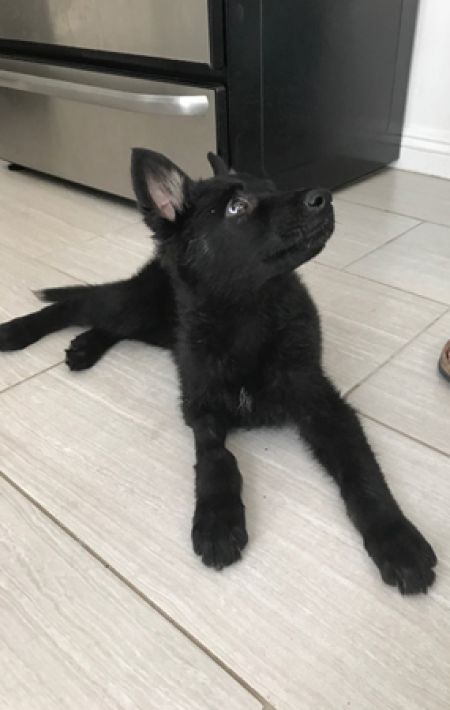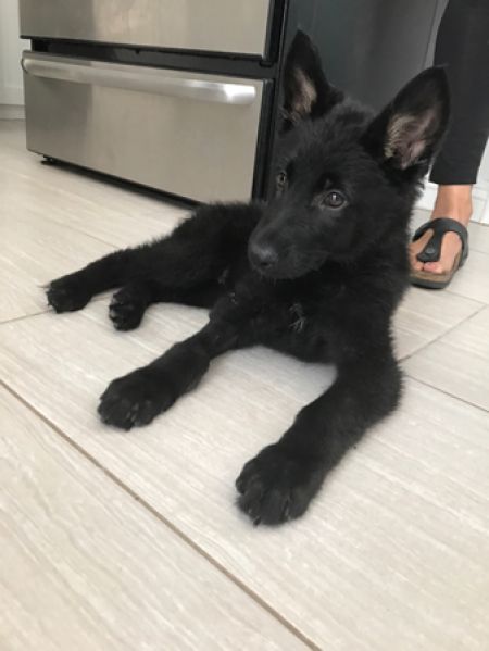 Eleanor is a beautiful 2 month old, all black German Shepherd puppy. She and her six siblings were left at a shelter because the backyard breeder had too many puppies and exceeded his limit. One of the litter tested positive for Parvo but Coastal rushed them all to a vet for preventative treatment. They were released after a week to foster homes. Eleanor and her siblings are going to be full sized (~60-70 pounds) GSD.