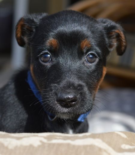 Etta (mom) came to us with her litter of 8 puppies from a shelter in the Inland Empire. Etta is a small German Shepherd mix. We do not know what breed(s) the father of the puppies was. The puppies were born in the shelter and went to their current foster home when they were 2-3 days old. They have been weaned and dewormed and will receive their first puppy vaccination and a microchip in a couple of days when they turn 8 weeks old. They live with a senior GSD and two young dogs, plus their mother. These puppies are healthy and very happy playing with each other and with the other dogs in the foster home.