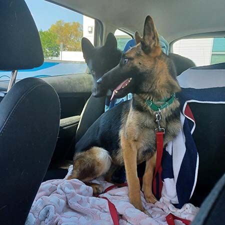 Ellie is a young, super sweet, gorgeous GSD who found herself living at Devore, a high-kill shelter. She was available for public adoption and was quickly snapped up, because her temperament is amazing, only to be returned because her new family was worried about her hips and elbows.