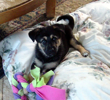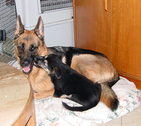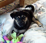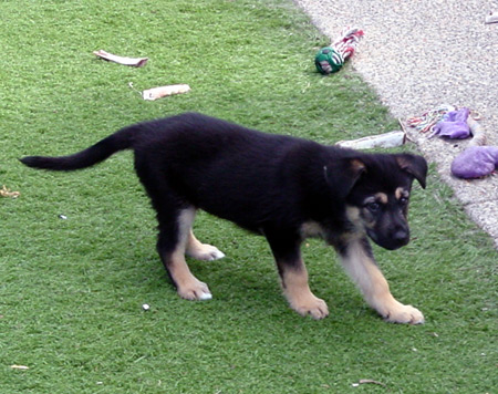 Ellie is an adorable 8 week old German Shepherd puppy. She was the smallest in her litter, but sure is spunky. She's very people oriented and will wiggle and waggle and roll over for belly rubs. She comes when she's called and loves to play with the big dogs. Ellie is a very happy and active girl. Ellie is crate trained, loves to play with her toys, take afternoon naps and is doing well on her housebreaking. She is smart and will make a wonderful addition to a family who is willing to raise her properly.