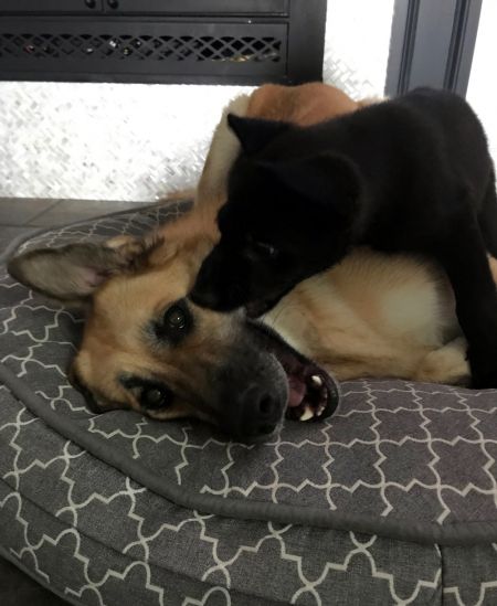 Nala was rescued from the streets of Torrance and delivered nine puppies shortly after she came to Coastal. Nala is a gorgeous German Shepherd but we weren't sure what the father could be. Her puppies are now 3 months old and based on their appearances, it looks like the dad could have been a black Labrador Retriever.