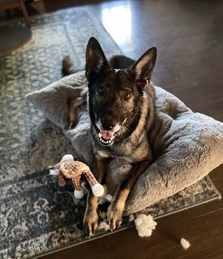 At one point, someone cared enough about Empress to house and crate train her, have her spayed, teach her "sit," "stay," "shake" and other commands. But by the time she was abandoned in an Animal Friends of the Valleys night drop, it had clearly been quite a while since anyone had cared for her properly. Despite being extremely malnourished and afflicted with raging ear and skin infections, this striking sable had a cheerful, outgoing disposition that made her a favorite with shelter employees and volunteers, one of whom sounded the alarm when Empress' time at the over-crowded shelter was about to run out. Coastal heeded the call, welcoming Empress to the family and getting her back on the road to good health. Now thoroughly vetted and fit as a fiddle, she's ready and eager for her next chapter to begin.