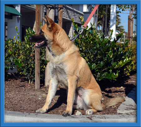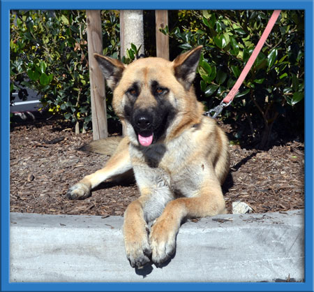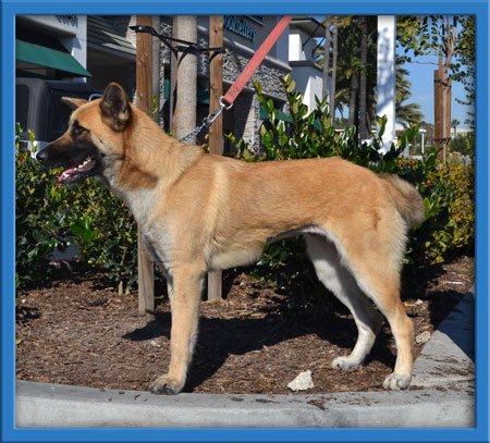 Epic is stunningly beautiful and wickedly smart. She looks like she may have a little Belgium Shepherd somewhere in her bloodline. Her elegant black mask and luxurious beige coat feathered with just a hint of black are strikingly attractive. She walks well on a leash, no pulling, yet with a little work she could be flawless. She is quick to accept any correction and learns very quickly. She appears to do well with males and females alike and does not insist upon being the dominant K-9. Epic is the perfect size for any size home and absolutely adores the energy of children. She is going to make the perfect addition to your home!