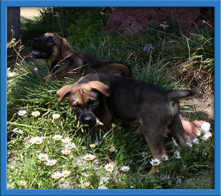 Elway and Esiason are two adorable 9 week old Shepherd mix puppies. We are not sure how they ended up in the shelter with their German Shepherd mom and 2 other littermates, the story a bit unclear . After much confusion, we were asked to help, so we quickly whisked these boys to safety. Now in a foster home, they are doing very well, showing no ill effects from their stint in "puppy jail".