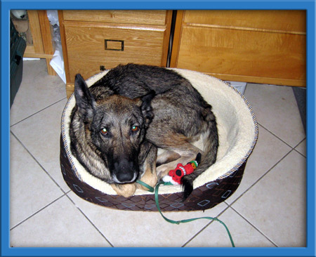 Etta came home with us and met a large pack of dogs (big & small), kids, parents, grandparents - she was pretty puzzled but in a very short period of time, she has caught on and bought into the progam very quickly! (Etta IS a German Shepherd after all!) The pack accepted her almost instantly. Her newest pictures tell the story that she likes all dogs big or small!