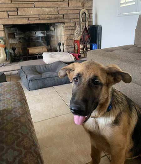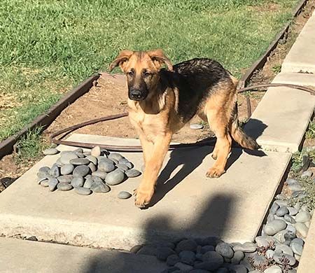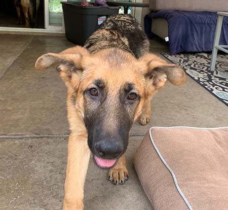 Meet Evan, one of the E litter pups. The first thing you should know about Evan is that he is the world’s best greeter. You will never feel so welcome anywhere as when you walk in your front door. A constant companion, Evan will follow you into whatever room strikes your fancy and will lay at your feet. Evan is proud to report he is nearly house broken and is a fairly excellent walker. One of his favorite pastimes is playing with his foster brother and fellow GSD, King. He also loves his other foster brother and sister, but those two seniors steer clear of this energetic freshman. Evan doesn’t mind, he’s as good natured as they come. Evan is a rambunctious puppy, but this is more than tempered by his numerous naps. Evan is a superb sleeper!