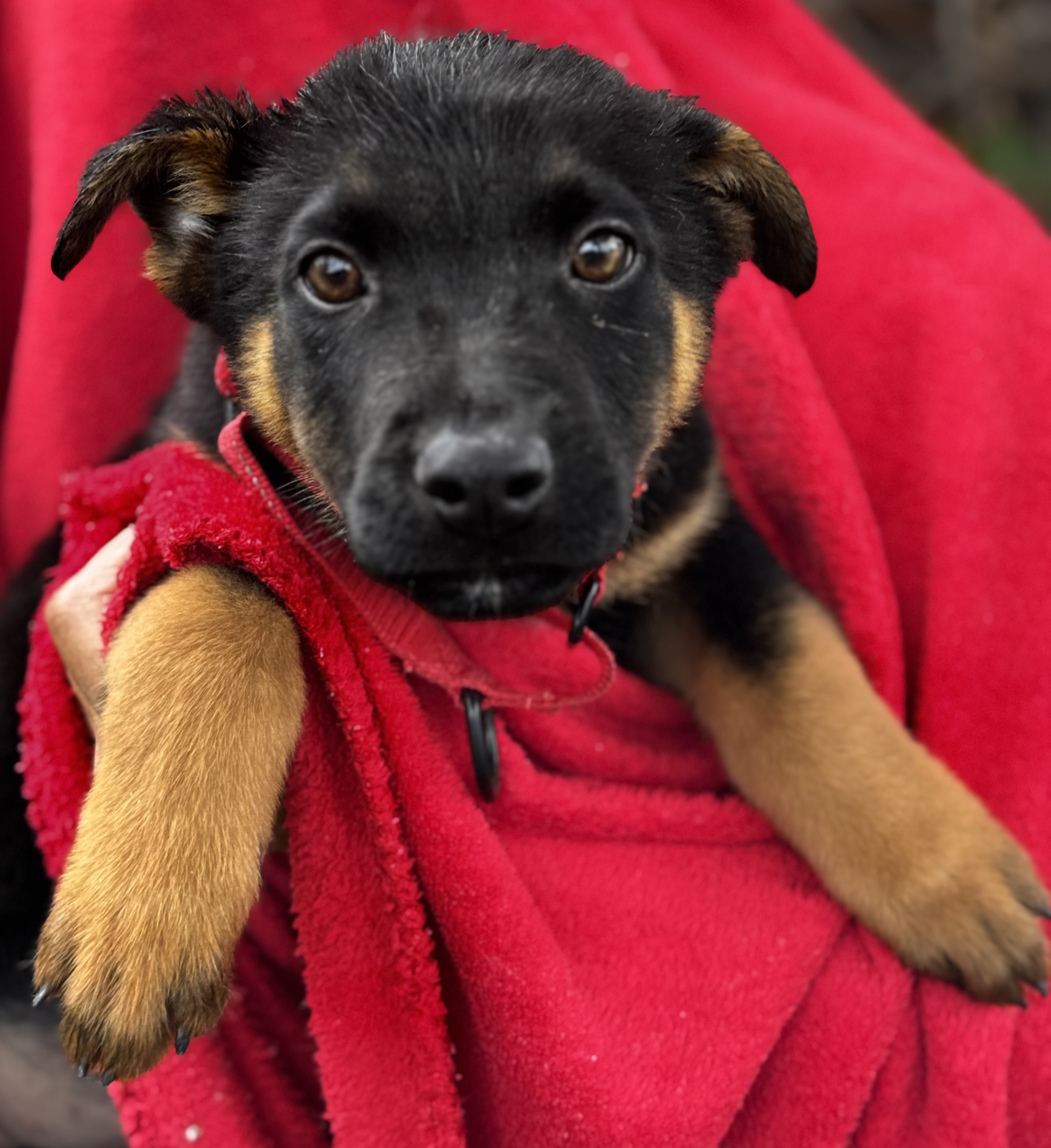 The six “E litter” puppies were found in a shelter drop box. They were very dirty but appeared to be surprisingly healthy. There are five boys: Echo, Easy, Elton, Ethan, and Everest, and one girl: Emma. They are approximately 3 months old and weigh between 10 and 13 pounds.