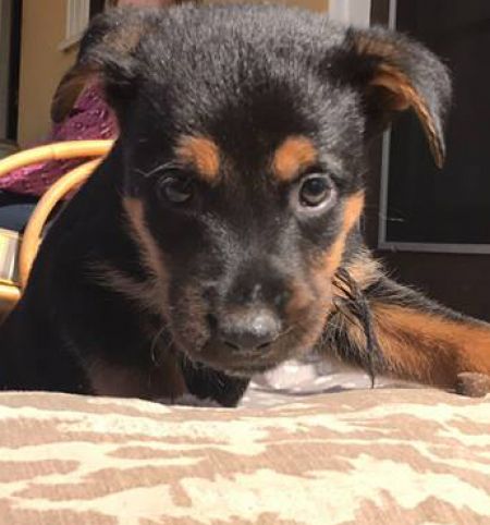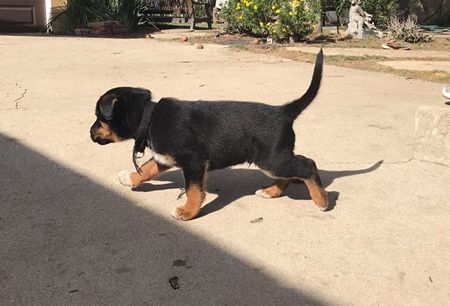 Etta (mom) came to us with her litter of 8 puppies from a shelter in the Inland Empire. Etta is a small German Shepherd mix. We do not know what breed(s) the father of the puppies was. The puppies were born in the shelter and went to their current foster home when they were 2-3 days old. They have been weaned and dewormed and will receive their first puppy vaccination and a microchip in a couple of days when they turn 8 weeks old. They live with a senior GSD and two young dogs, plus their mother. These puppies are healthy and very happy playing with each other and with the other dogs in the foster home.