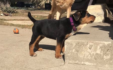 Etta (mom) came to us with her litter of 8 puppies from a shelter in the Inland Empire. Etta is a small German Shepherd mix. We do not know what breed(s) the father of the puppies was. The puppies were born in the shelter and went to their current foster home when they were 2-3 days old. They have been weaned and dewormed and will receive their first puppy vaccination and a microchip in a couple of days when they turn 8 weeks old. They live with a senior GSD and two young dogs, plus their mother. These puppies are healthy and very happy playing with each other and with the other dogs in the foster home.