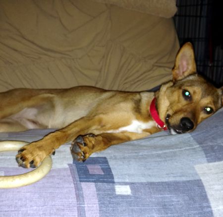 Faith/Bella is a medium sized dog – about 35 pounds and will stay on the small side. She is energetic, loving, smart, playful, loves people and pets (not sure of cats but think she would do fine). She is potty trained, crate trained and knows basic commands. She is up to date on her shots, been spayed and is now looking for her forever family.