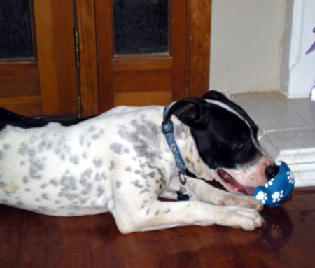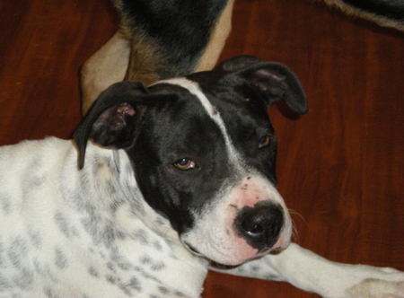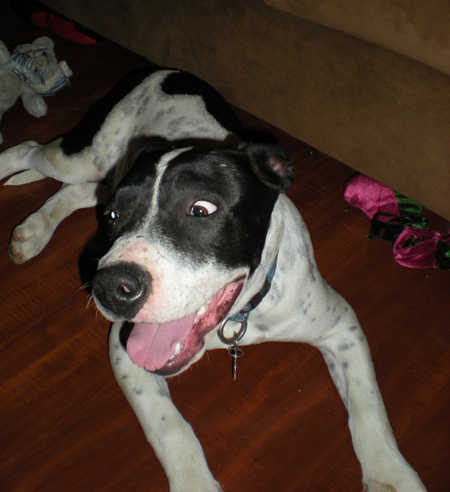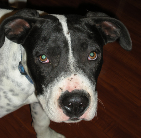 He is a little under a year old and is all puppy. He was probably always an outdoor dog as he was very afraid to come into the house on his first day with his foster family. After his first 24 hours, he quickly discovered what life is all about. He has made himself at home with the resident Shepherds and is being crate trained. He is being introduced to the 7lb Maltese and the resident cat. He is doing well under supervision.