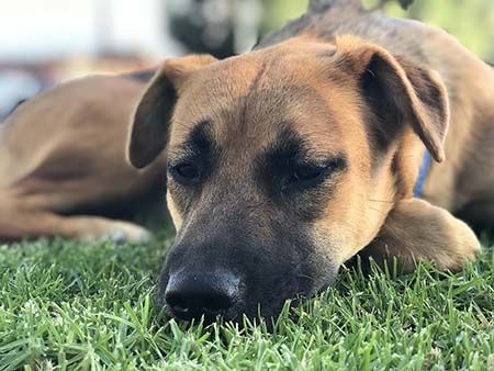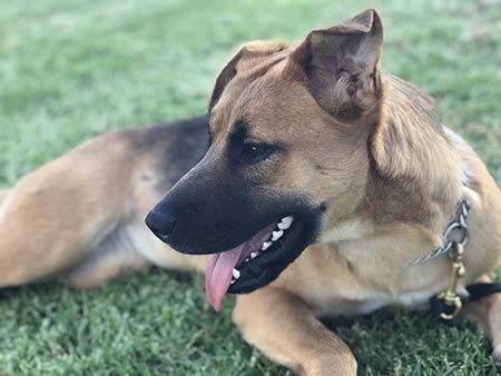 Farrah was born in a backyard and lived there with dozens and dozens of other dogs. She wasn't socialized with people and was terrified of them when we were asked to rescue multiple dogs from this property. She would curl up in the fetal position and hide in any corner she could find, but never showed any aggression. She takes comfort in other dogs and is good with dogs of all sizes. We sent her to a training boot camp, which socialized her and has made her so much less scared of people, to the point where she will now approach new people and dish out the kisses in the first ten minutes. Around 35 pounds, Farrah is full of personality, adores other dogs, now knows how to walk on a leash, is crate trained, and looking for a patient person who can help a timid dog adjust to their new life.