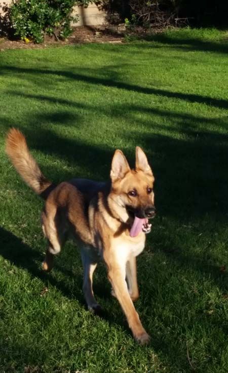 Farrah has a condition common to GSDs: pannus. It's easily treated with a topical ointment and it doesn't slow her down one bit!