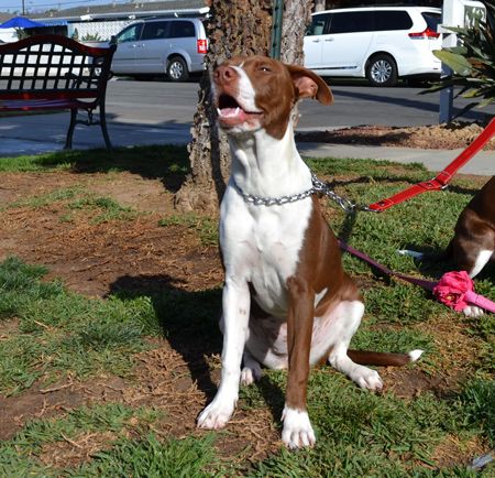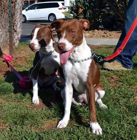 Fern and Ginny, who has the bigger/thicker white stripe on her head, are a bonded pair of puppies who get along with dogs of all sizes. As such, we will adopt them out for only one adoption donation.