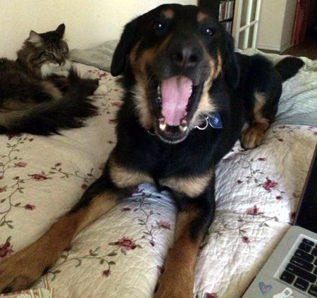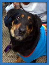 Finn has been with a family since February; he loves kids, cats, other dogs, loves riding in the car, swimming and is very social. He even did some pet therapy with his foster mom! Finn is currently living with a bunch of other dogs and loves the company. Weighing in around 50 - 55 pounds, he's the perfect size, to boot.