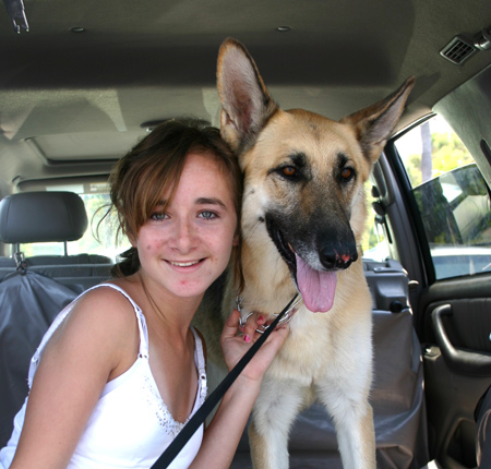 Fiona spent most of her day in the backyard where she used to live. She lived with a 2 kids, a 9 and a 10 year old. They gave her up because they were moving. Once in the shelter for a good 7 days, she was bewildered and depressed until the shelter people roomed her with a very playful Aussie Shepherd . . . . then she was in heaven!