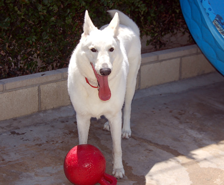 Flash gets along great with other dogs - he's a rambunctious pup and will do best if his energy is channeled through daily exercise and an established routine. He's probably about 18 - 24 mos old.