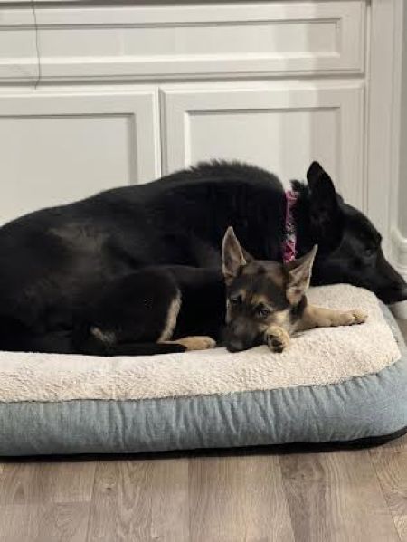 Freya and her sisters are big girls. Very puppy-like and playful, they are about 10 weeks old, but large for their age. They will most likely grow up to be big, beautiful German Shepherd Dogs.