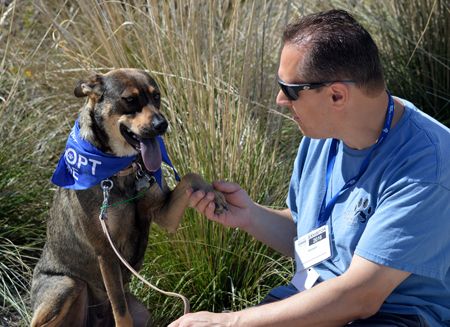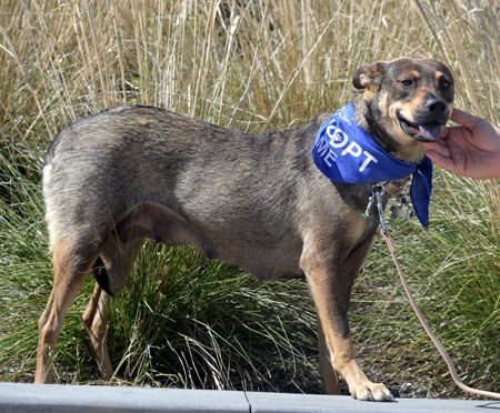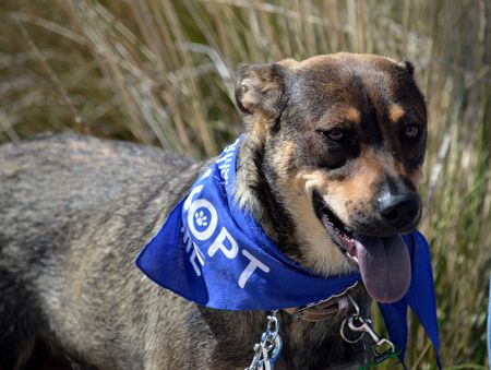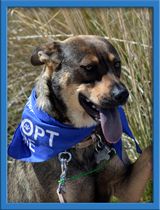 She's an absolute doll and extremely sweet. She's been living in a foster home with other dogs, and is good with large and small dogs, and loves children. We haven't cat tested her, but with a savvy cat suspect she would be just fine. If you've never had a dog before, Gabby would be a real easy peasy starter and show you lots of love!