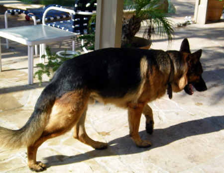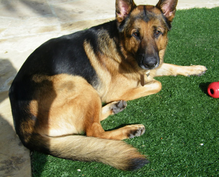 He has a lot of energy so he'd be best in a home with another playful dog, perhaps a female although he has lived with an older male shepherd and done just fine. Geronimo's hips aren't the best although our doctors have told us not to do surgery - he is not inhibitied by a less than perfect bone structure - he isn't the best candidate for a running or agility partner BUT hiking, swimming and going for long walks? YOU BET!