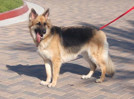Gertie is a spunky young girl eager to please. She is a coated German Shepherd with a beautiful coat and stunning yellow eyes. She is still very much an energetic pup and enjoys playing with her ball and a peanut butter filled kong. She has some understanding of basic commands but as she is young, she has a tendency to mouth handle but is quickly corrected.