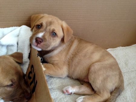 Grace's 10 puppies were born 4/05/2014 and will be ready for their new homes on May 31. Like Skittles, these puppies are very colorful. We have 2 boys and 8 girls looking for homes. Mama Grace is a pittie mix and dad is a GSD. These pups are very sweet and smart. While they are active puppies, they seem to have a nice balance of calmness and energy. They should make excellent additions to their new families. If you are looking for a Gem of a pup, fill out our online adoption application to start the adoption process.