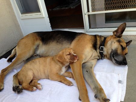 Grace's 10 puppies were born 4/05/2014 and will be ready for their new homes on May 31. Like Skittles, these puppies are very colorful. We have 2 boys and 8 girls looking for homes. Mama Grace is a pittie mix and dad is a GSD. These pups are very sweet and smart. While they are active puppies, they seem to have a nice balance of calmness and energy. They should make excellent additions to their new families. If you are looking for a Gem of a pup, fill out our online adoption application to start the adoption process.