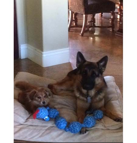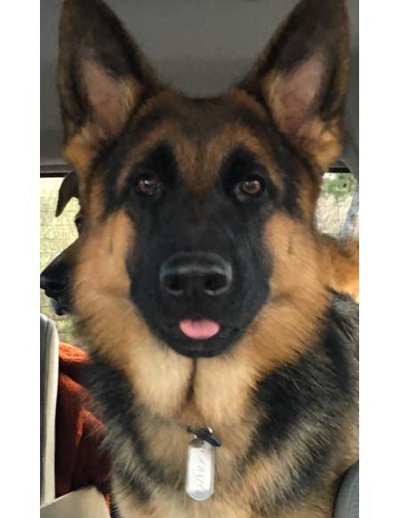 He's very well trained in heeling, down stays, wait, eye checking, shake, high 5, say hi, etc. Gonzo does not jump on furniture nor beds, is good in the house, potty trained, is not food aggressive, and is an indoor dog who loves to play with his toys, go on walks, and run along a bike for exercise. He likes to give kisses, run between your legs, and he is a hugger. Gonzo can be protective of his home, so he will need a family with GSD experience.