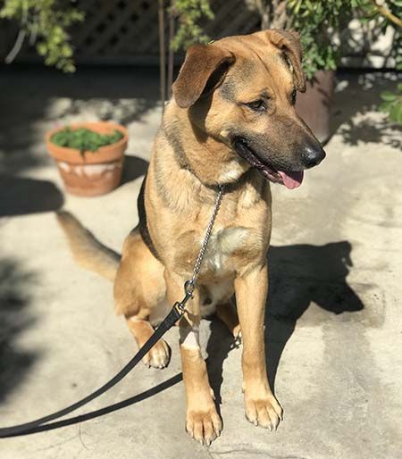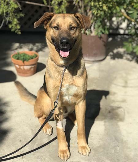 If you're a fan of Labs and a fan of GSDs, you won't meet a better dog! This charmer is working on his obedience game, is smart and food motivated, so he picks up new things quickly. He can be a little jumpy for young children, but teenagers would love his energy.